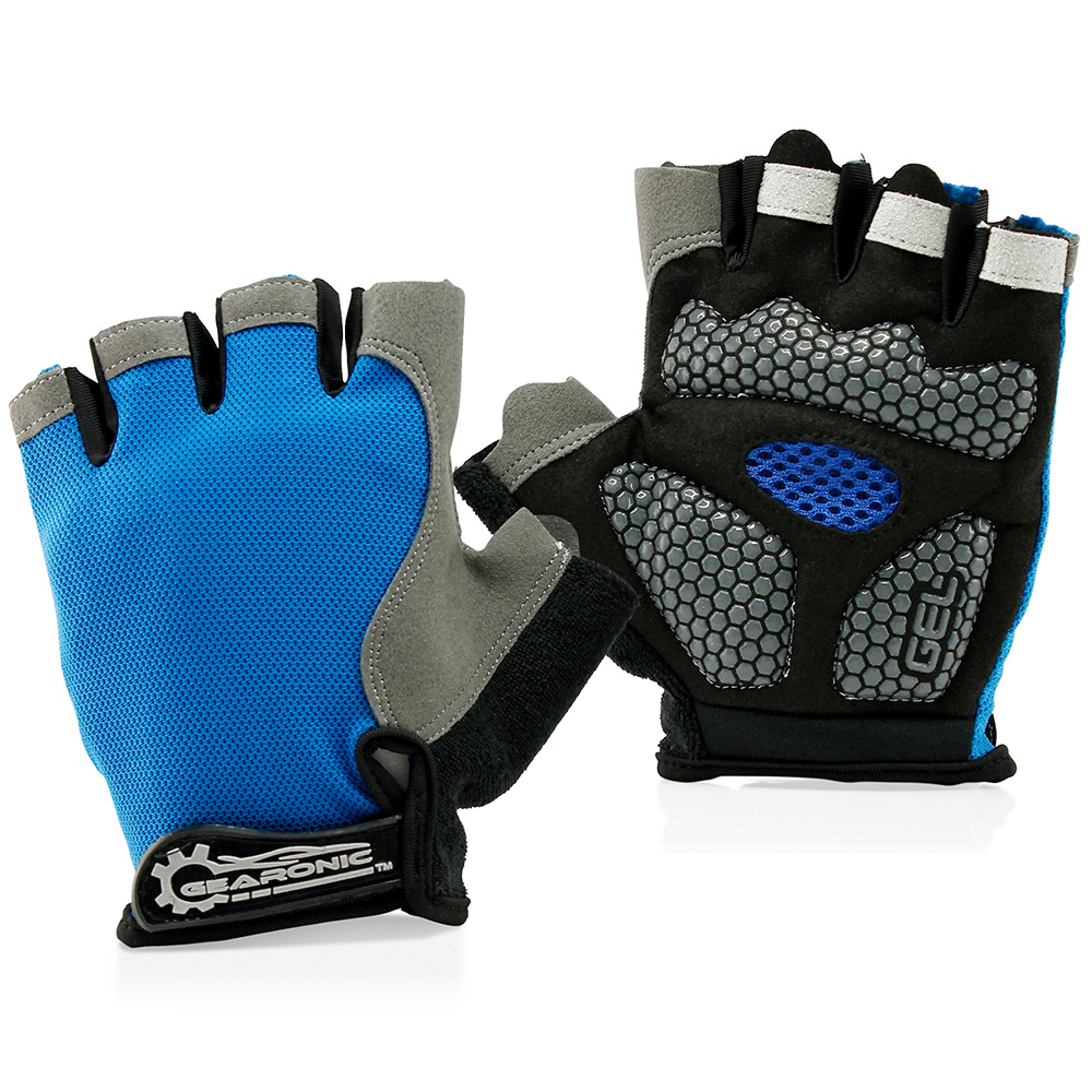 Home/Sport & Recreation/GEARONIC TM Cycling Workout Gloves Half Finger Mountain Bicycle Men Women Gel Pad Anti-Slip Breathable Outdoor Sports Shock-Absorbing Riding Biking Cycle Glove - BlueL